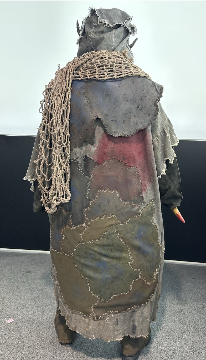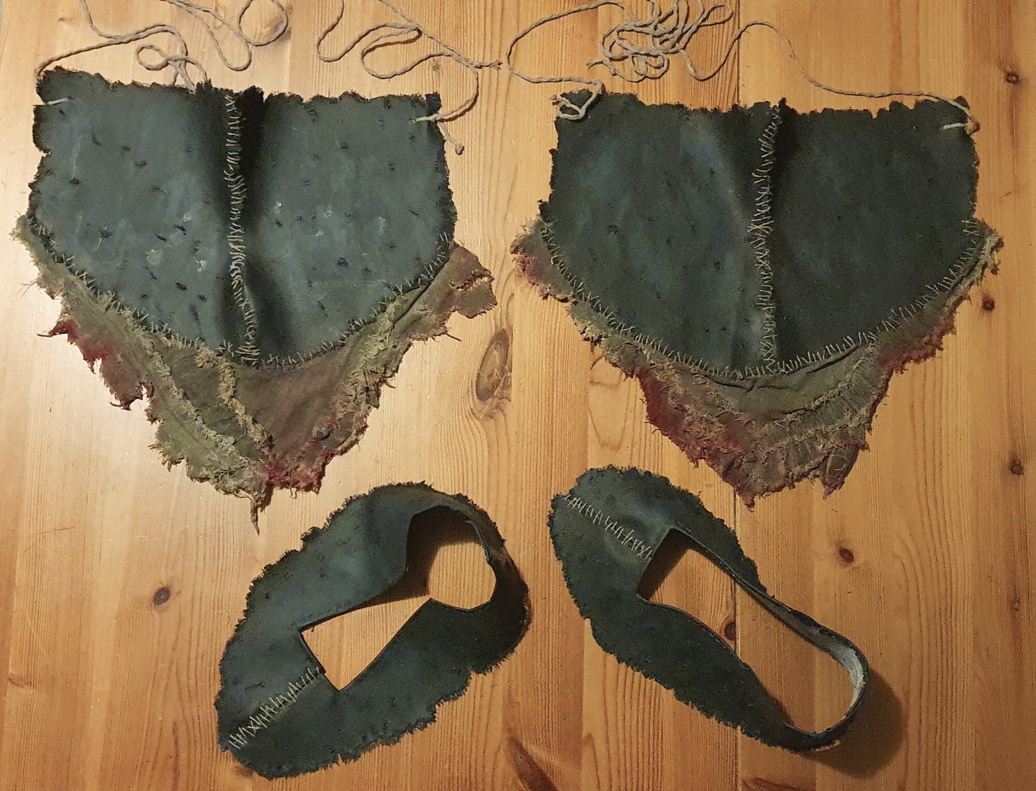 Teil 2: Eine Abdeckung, die nachträglich um die Hose und das Bein gebunden wird.