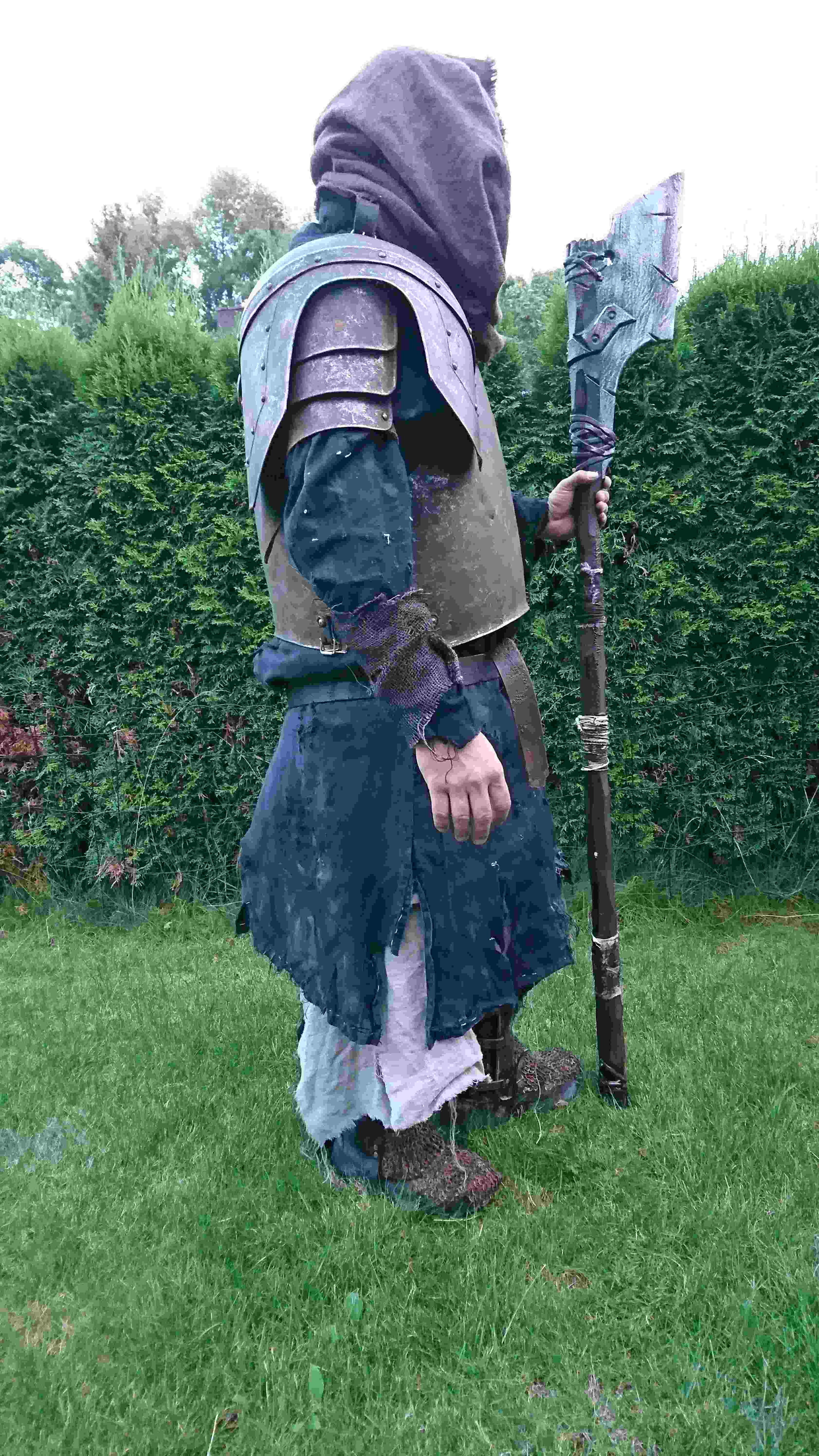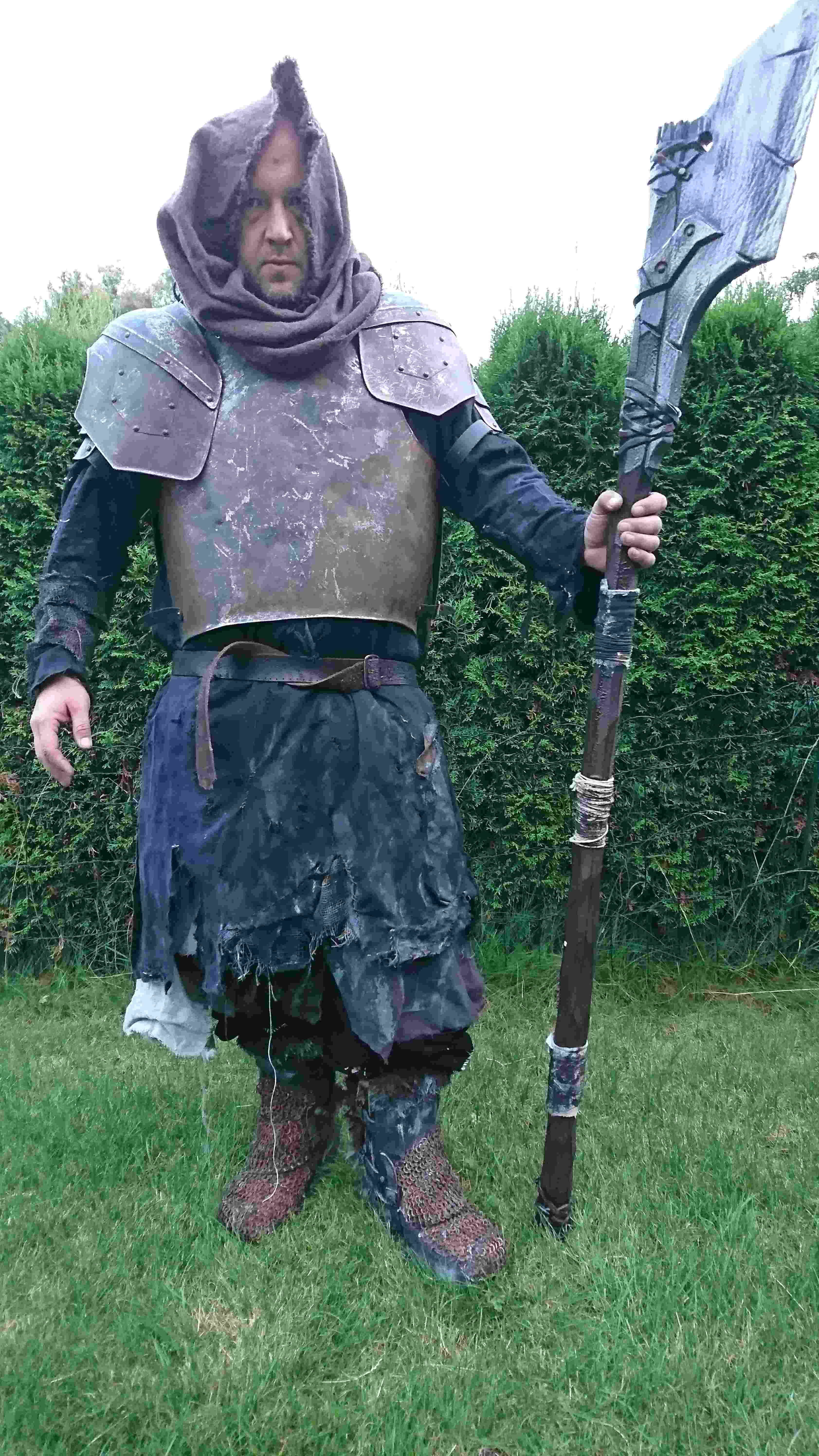 So, mal wieder ein kleines Update... Aktuell beschäftige ich mich mit den Schuhen... Hab wasserfeste outdoor Stiefel genommen, die ich entsprechend abtarne... Darüber kommen Gamaschen aus Leder und der Übergang wird mit Kettengeflecht gemacht.