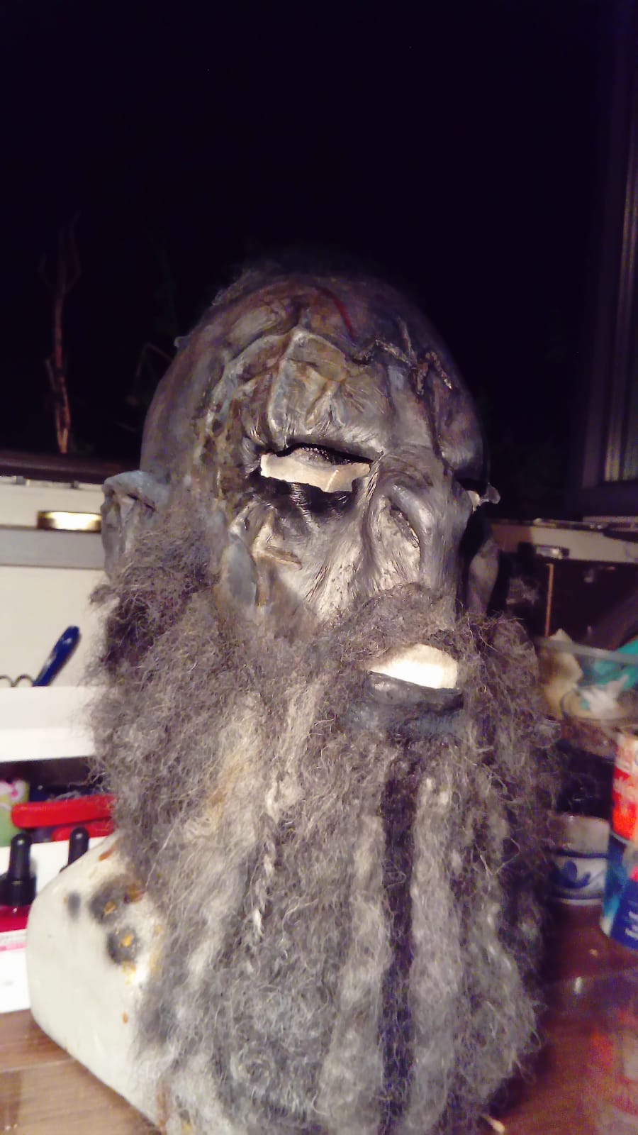 Maske ist fertig, muss noch bemalt und behaart werden.