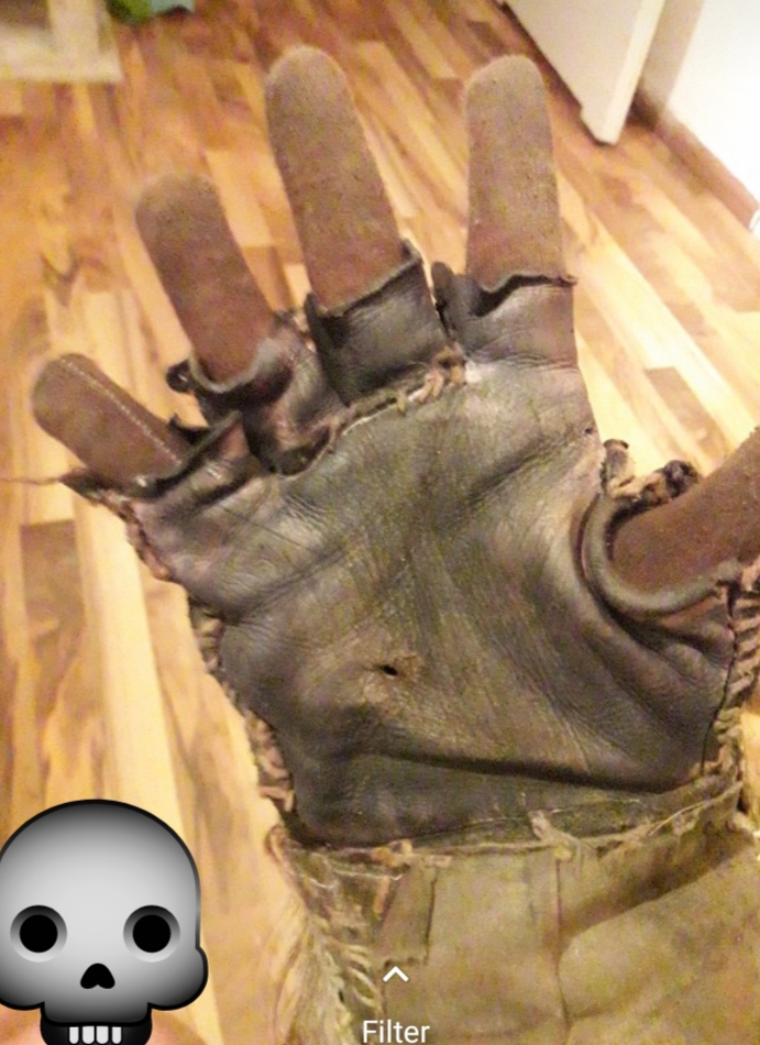 Hier ein ursprünglich grauer spaltleder Handschuh, Foto ist von gerade eben und bepinselt so 2017