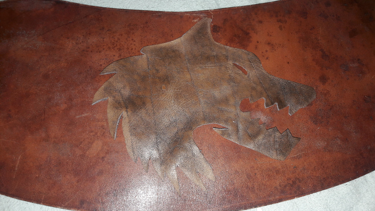 Schulterplatte aus Linothorax, mittlerweile steinhart (10 -12 Schichten Baumwolle.. irgendwann hab ich vergessen weiter mitzuzählen):