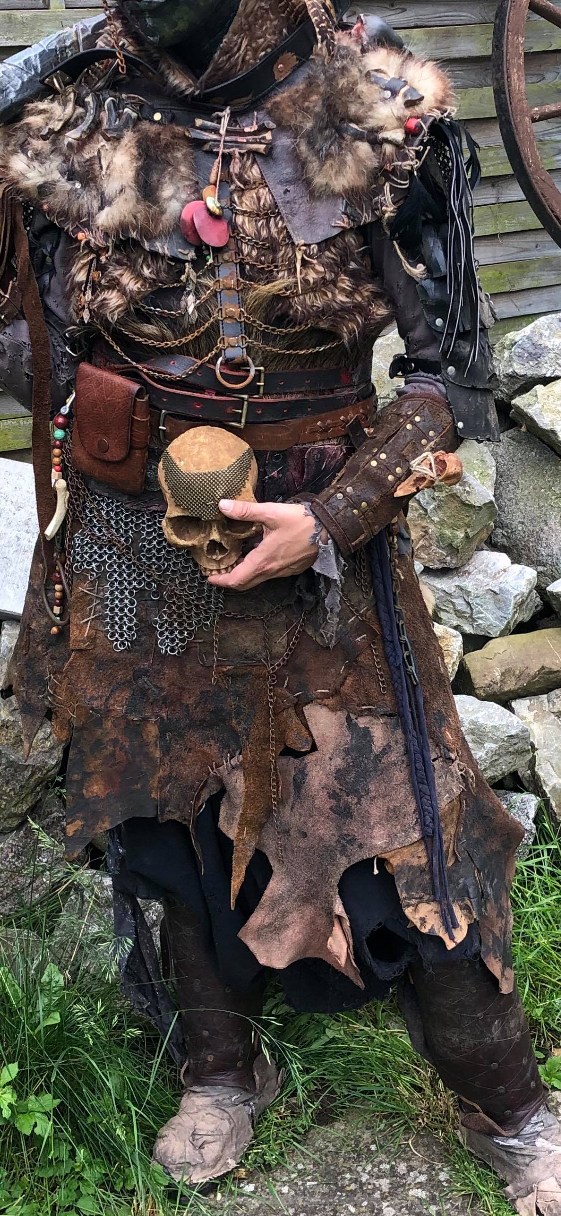 Ich mag auch die Fellmix(Hase und Wildschwein?) vom Brustteil. Wie kampftauglich der Kopfschmuck ist, wirst du wohl mal testen müssen. Im Garten mit Freunden ein wenig Larp Kampf in Maske(Rest is ja hierbei nicht so wichtig) sollte das schnell zeigen.