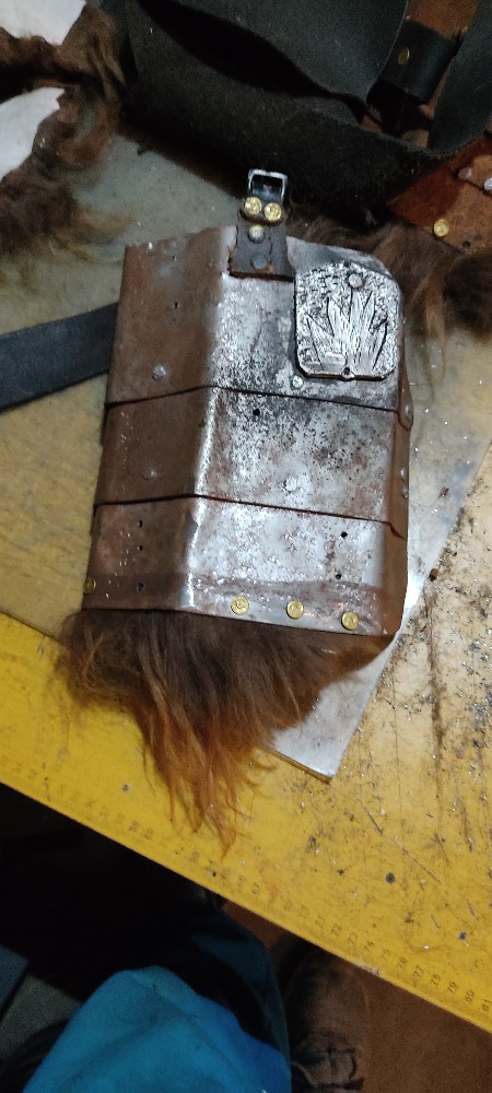 Die andere hat eine Feuerglyphe im Austausch gegen die spitzen Dreiecke erhalten. Da kommt auch noch ein Riemen drüber gespannt aber wohl mit Wildschweinhauern versehen.