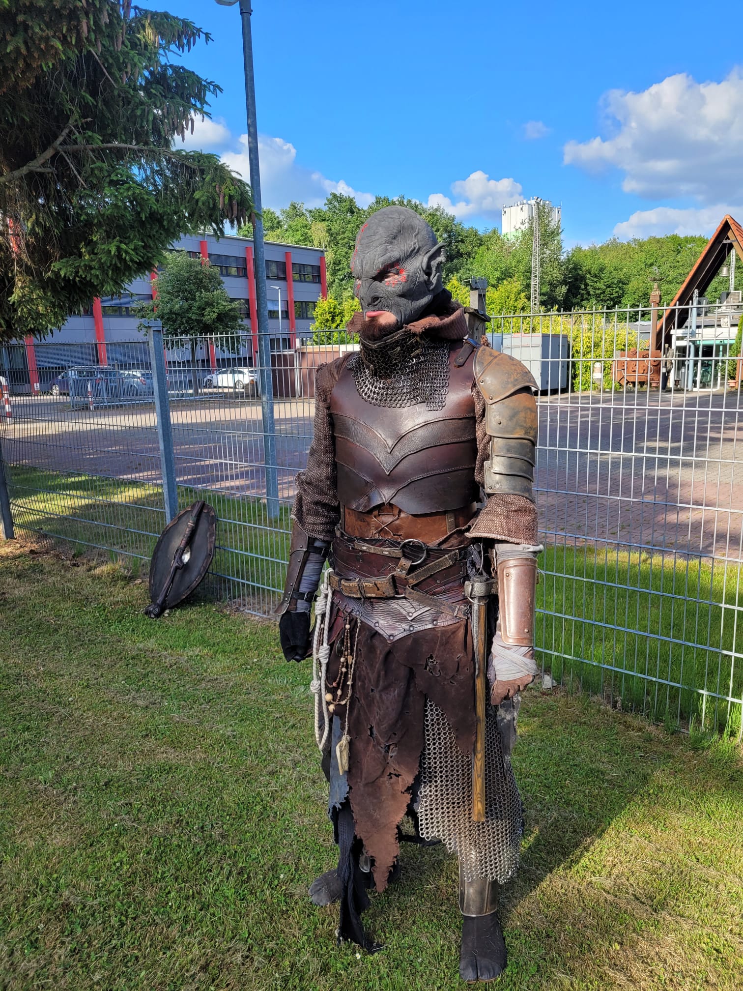 Hi, ich spiel jetzt seit ca.1.Jahr einen Ork und wollte hir mal meine Klamotte reinstellen. Um neue anregungen, tipps und Feedback zu bekommen. Ein paar punkte die an meiner klamotte geandert werden mussen sind mir klar. Wie die Hande die mussen dunkler werden, der schwarze unter Rock muss getauscht werden, an der Kaputze muss was gemacht werden und Beinschienen fehlen.