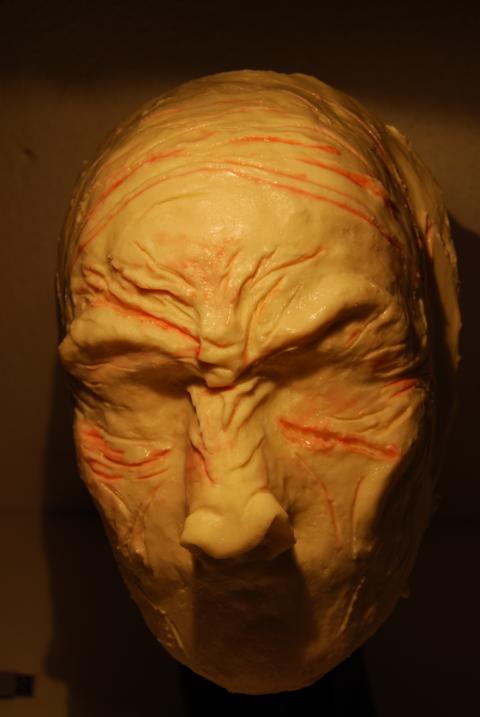 Mit mehr Gips hätten wir weiter runtergipsen können. Evtl. gips ich nochmal was nach oder häng später einfach Lederfetzen an den hinteren Teil der Maske. Für die Haare plus Zopfband ist hinten unter der Maske jedenfalls gut Platz.