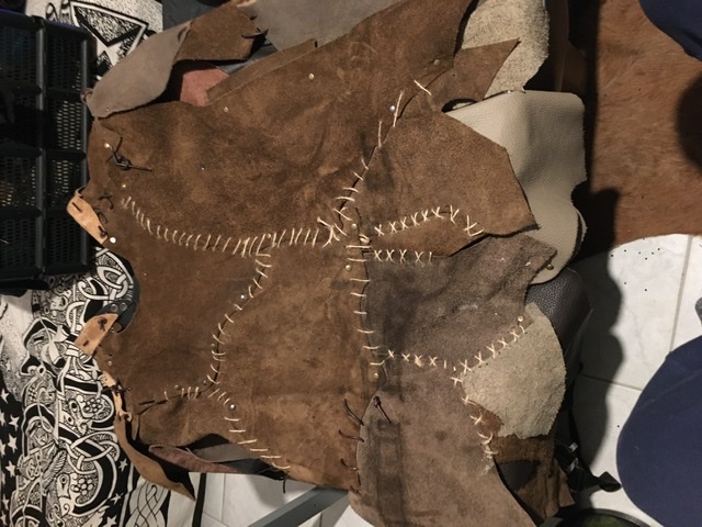 So nach 5 Std kopfzerreißender Arbeit mit blutigen Fingern & 5 Bier später hab ich endlich meinen Lederschurz fertig bekommen