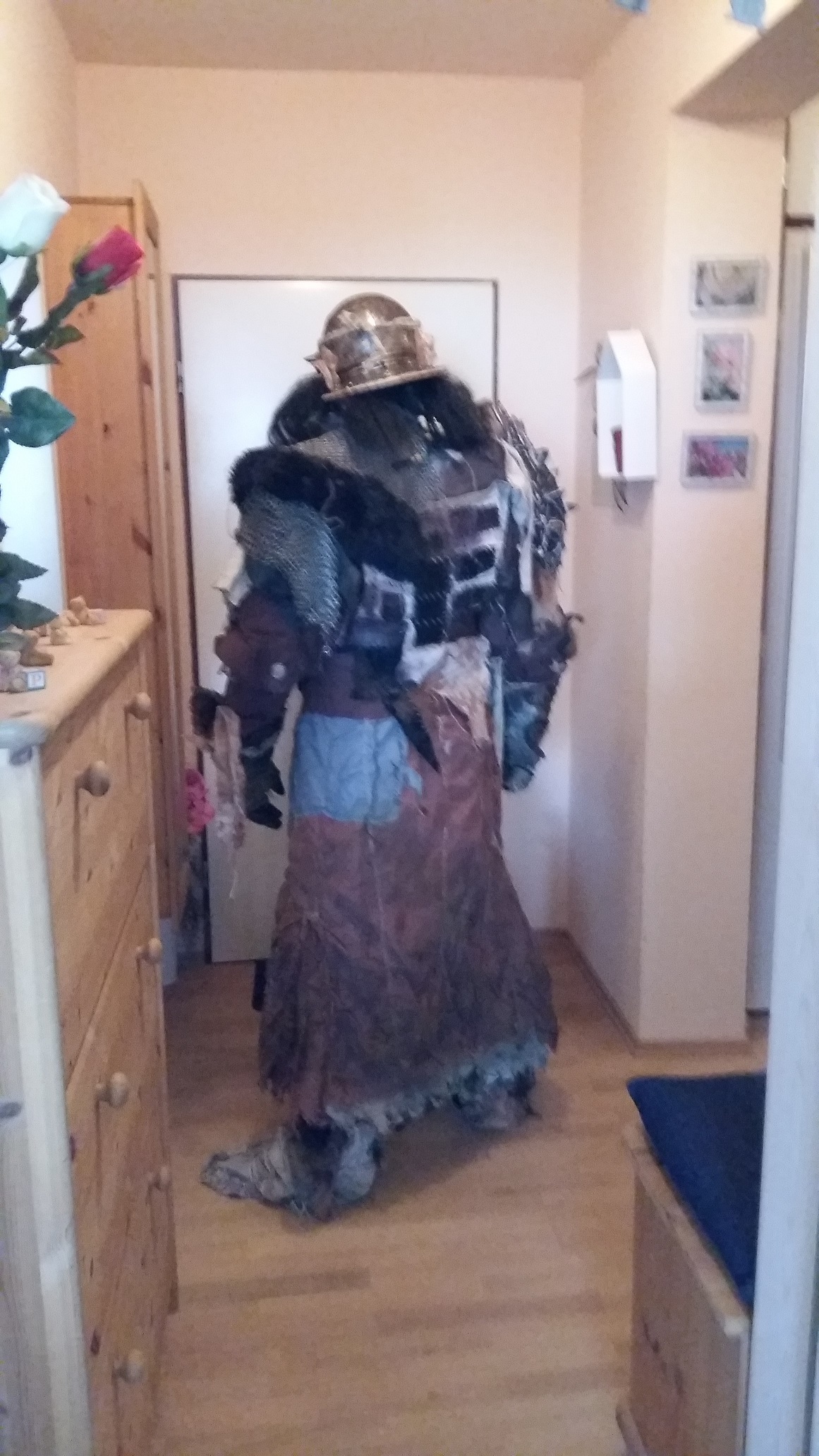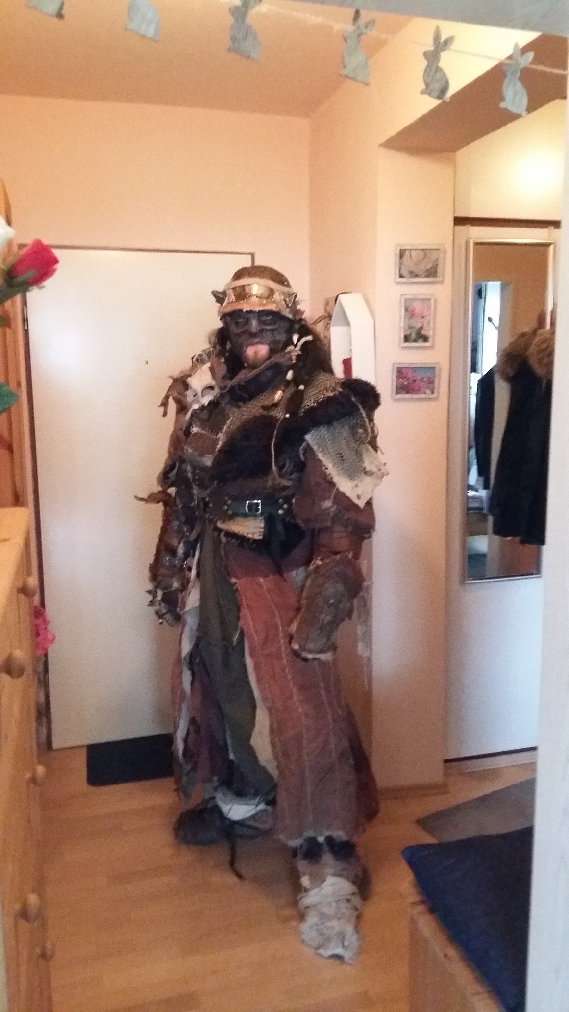 Erst mal der Aktuelle Stand. Für die dies noch nicht wissen mein Ork ist aus einer alten Barbaren Klamotten entstanden. Nun ist der Plan ihn fürs Drachenfest auf zumotzen.