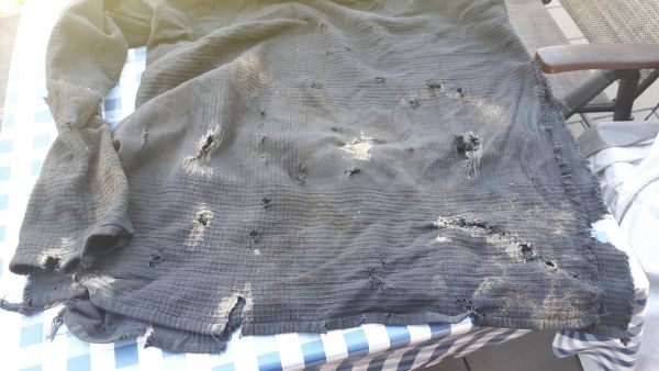 Bis dahin ohne mich, nur den Stoff mit Dreck und Löchern, auch wenn es in Wirklichkeit dunkler ist, als das was das Handy daraus gemacht hat.