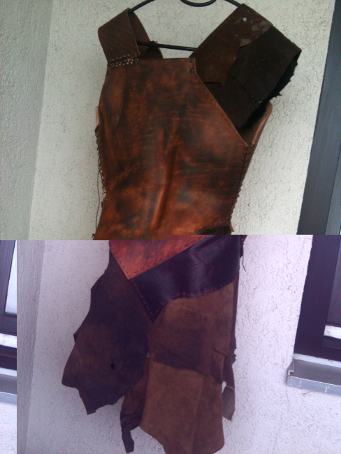 Vielleicht noch ein paar Flicken auf die Unterklamotte. Undnoch ein paar Lederstücke / Lederfetzen auf die Rüstung