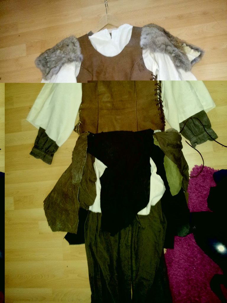 Ledertop mit Kaninchen-Fell an den Schultern (was auch eingesaut wird....) Vllt sieht man nun, warum ich es lieber nicht als oberste Schicht tragen möchte.... Um einen Kragen komme ich da definitiv nicht herum, aber da hab ich schon Ideen und das ist etwas was ich kann^^
