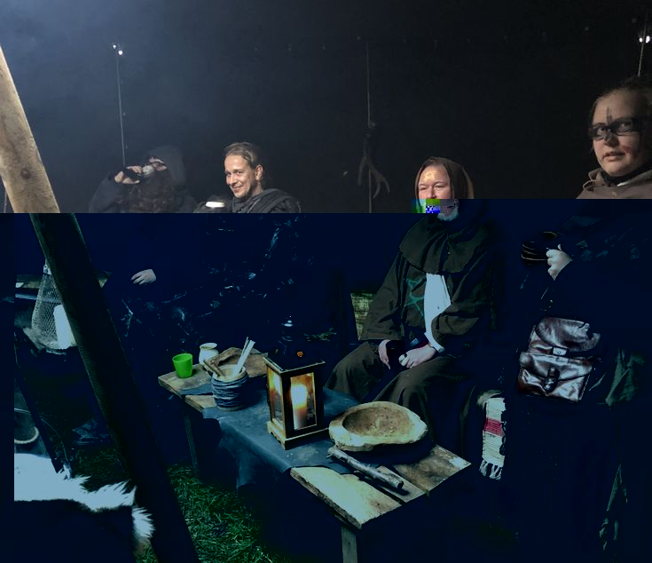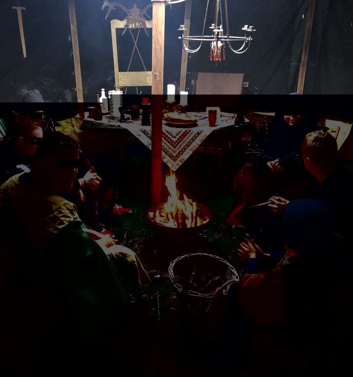 Bereits am Tag zuvor wurden die zwei großen Rundzelte auf der Bolzwiese der Schule von Eeckhout und seinem Schüler-Team errichtet und urig eingerichtet. Am Abend verwandelten die SchülerInnen sich in Waldläufer, Spitzbuben, Zauberer und Krieger und tauchten in eine andere Welt ein, um anschließend ein aufregendes, fantasievolles Abenteuer mit Rätseln, Schatzsuche und Action zu erleben. Ein Vater einer Schülerin braute als Druide über dem Feuer einen warmen Kräutertee und führte mit den kleinen "Recken" ein magisches Ritual durch. Gefährliche Orks aus Mordor sorgten für Nervenkitzel und der Böseste aller Bösewichte wurde wieder zur "Guten Seite der Macht" getrieben. Auch Schulleiterin Christel Stegemann wollte am Abend reinschnuppern und miterleben, was der Schulsozi mit seiner LARP-Truppe so ausheckte. Dazu legte sie selbst eigens eine Gewandung an. Sie und alle SchülerInnen waren von der Aktion, die viele Neugierige anlockte, begeistert.