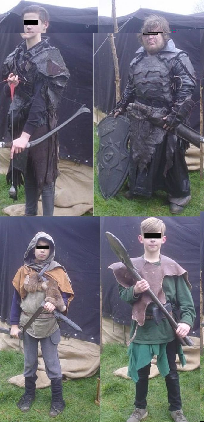So, wir haben unsere erste kleine Mini-Con von der AG her gehabt und ich habe mal ein Bilder von den kleinen Rackern ("die Füchse von Asrea") gemacht, die ich hier über mehrere Beiträge hinweg reinsetze. Die Gesichter habe ich aber mit nen balken unkenntlich gemacht, da es ja hier ein öffentlicher Bereich ist. Einige sind klamottentechnisch schon etwas weiter, als andere, aber so nach und nach wird`s.