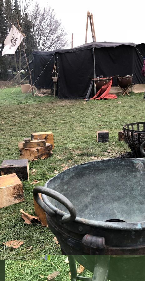 Bereits am Tage zuvor errichteten sie nördlich des Turnierplatzes ein großes Lager mit zwei riesigen schwarzen Rundzelten und mehreren Feuerstellen, denn es waren 25 Füchse, denen es nach Feiern dürstete. Zwei große Fässer mit Süßteewasser und zahlreiche Schalen mit Käse, Würstchen, Kartuffelwürmer und Huffelpuffs sowie ein Kessel mit Fleischsoße und Stangenbrot warteten nur darauf in den Rachen der Recken zu verschwinden.