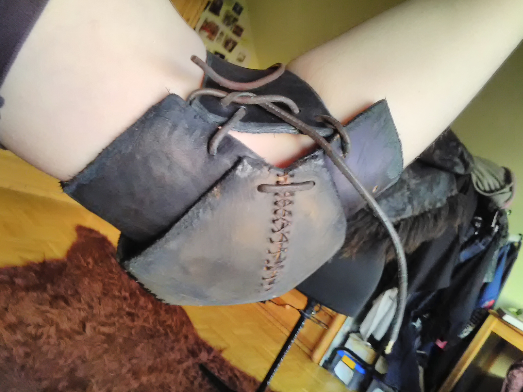 In letzter Zeit habe ich lediglich eine Stellen an den Armschienen nachgearbeitet, einen Schutz für meine Ellbogen aus Leder gebastelt, eine neue Hose und eine neue Gugel genäht.