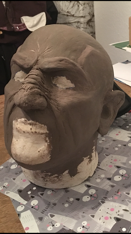 Mit dem Abbild meines Schädels wurde dann mittels Knetmasse versucht Rakhnûr ein Gesicht zu geben (leider gibt es von der aktuellen, überarbeiteten, Version keine Bilder, da die Maske schon beim Abgipsen ist und ich es schlichtweg vergessen habe):