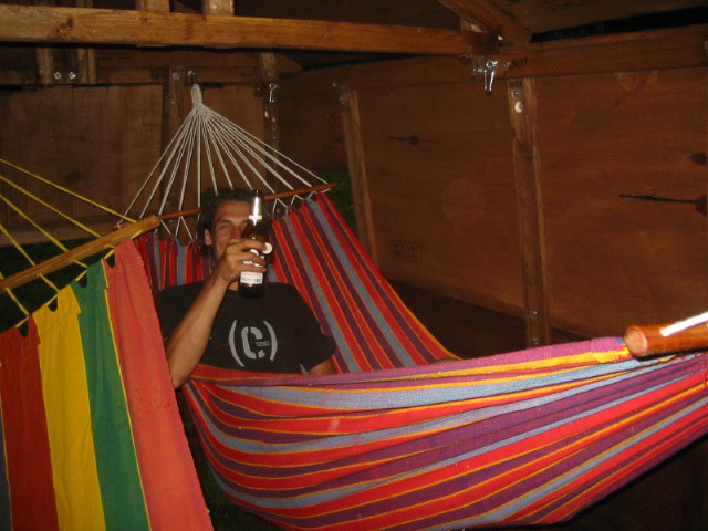 Also das Ding besteht aus einer Holzhütte auf 6 Rädern in dem der 5 Meter lange Baumstamm (verkleidetes KG-Rohr) mit der Faust aus Schaumstoff in Eisen- und Steinoptik hängt. Der Stamm ist an Ketten beweglich aufgehängt und hat 4 Griffe zum anfassen und schwingen.