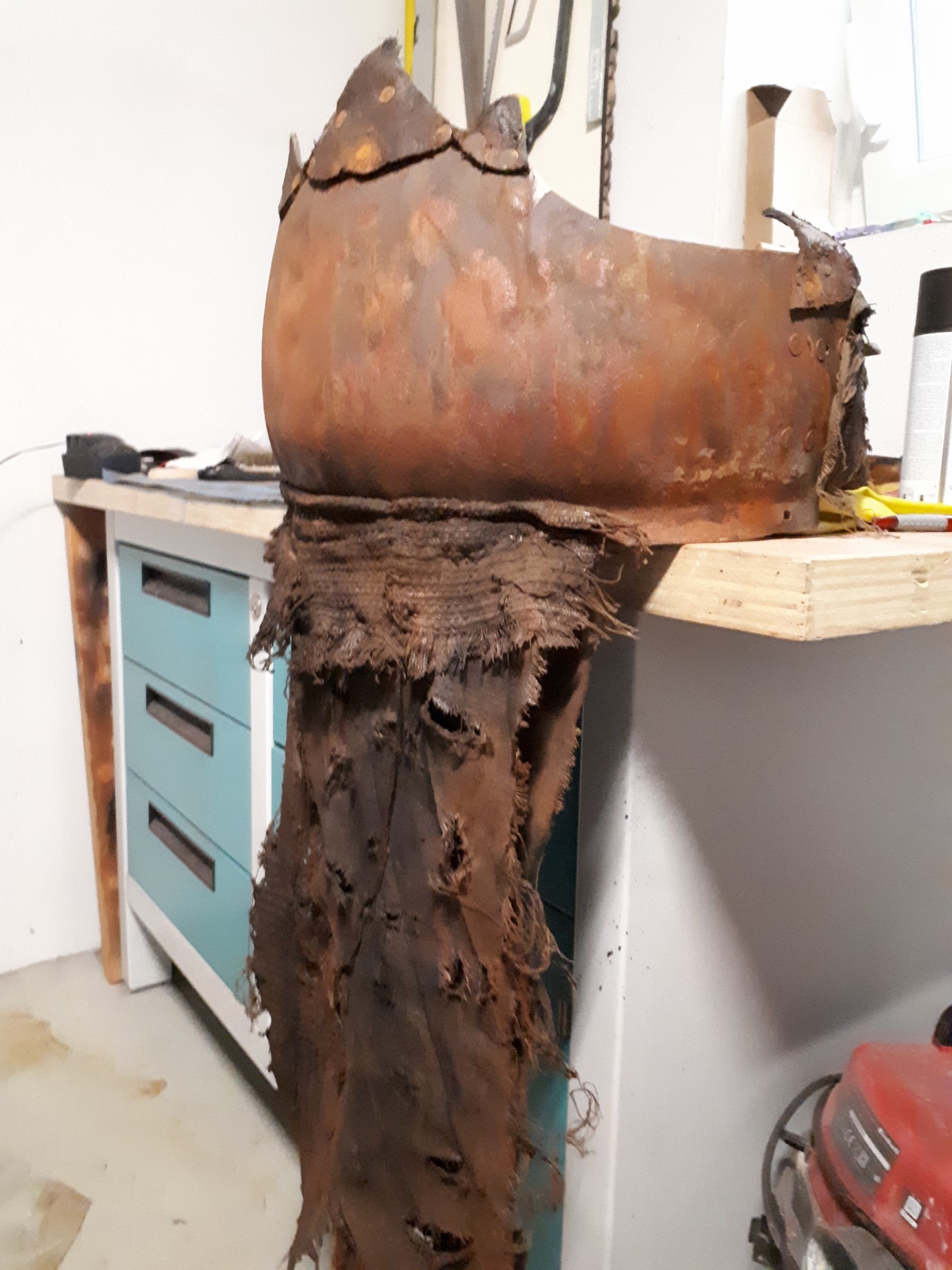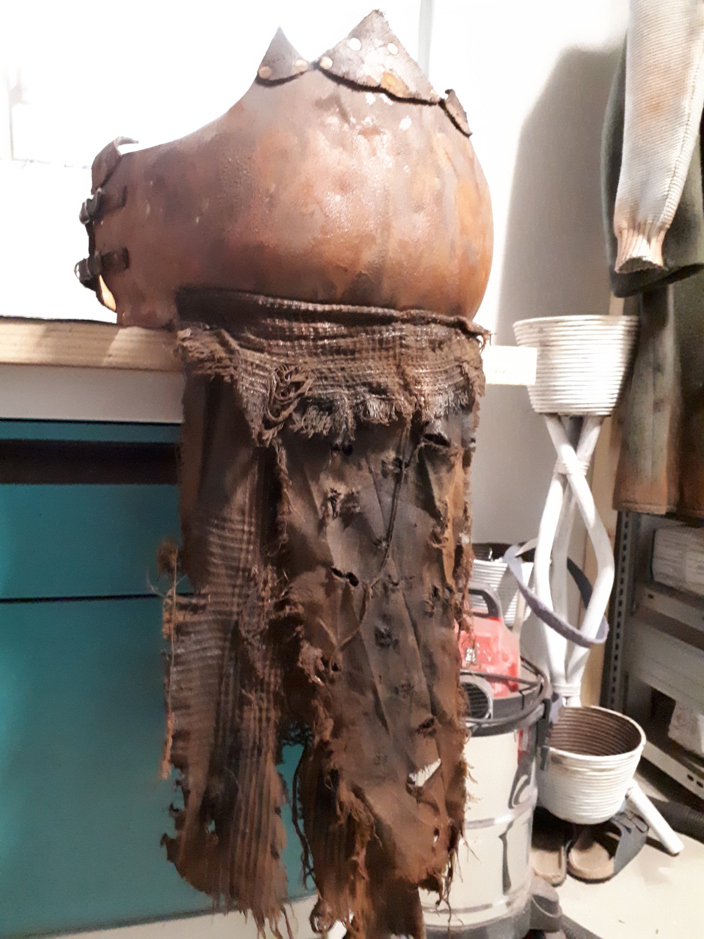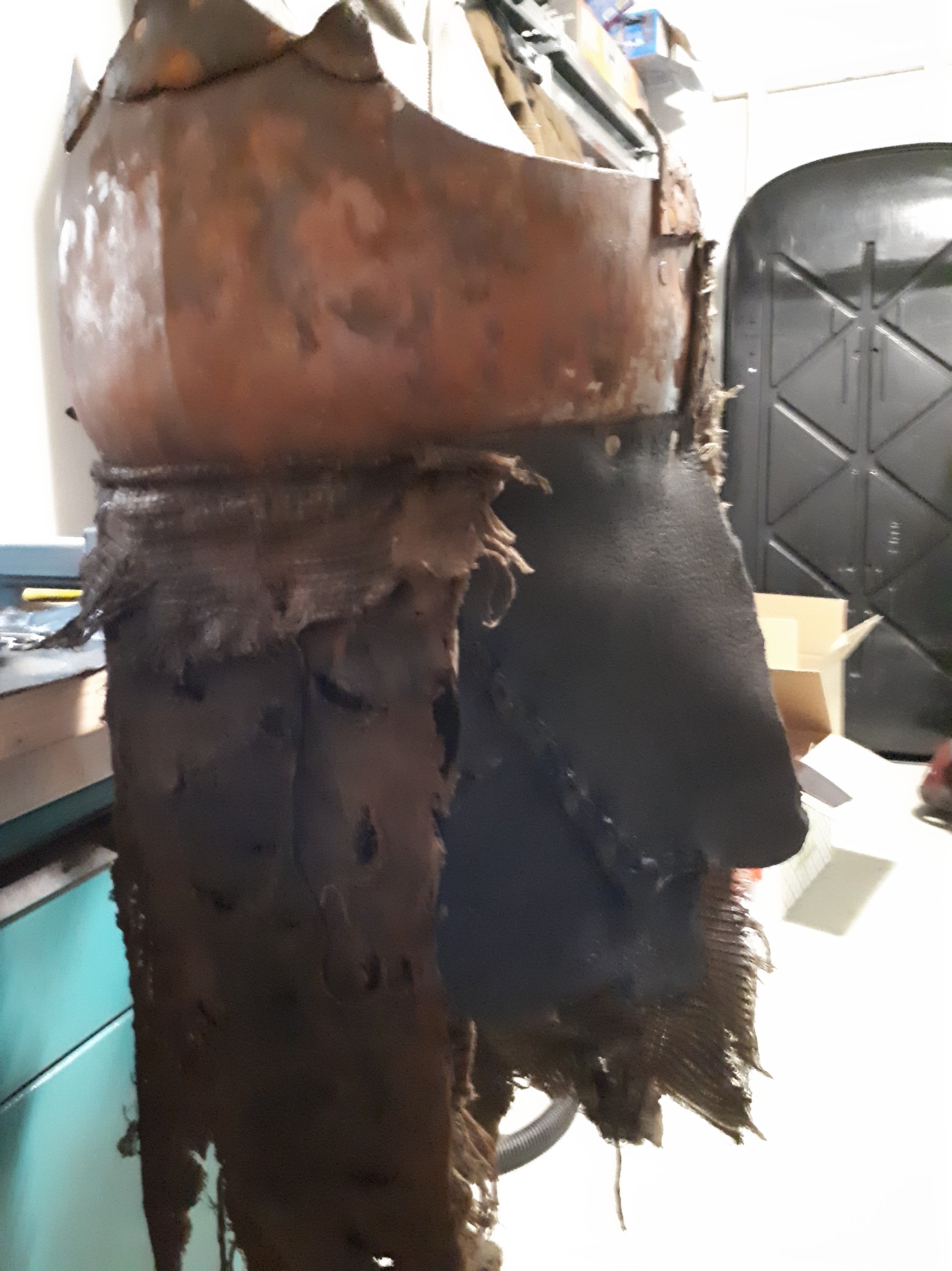Ich hab vor, einen baugleichen Schurz wie vorne auch hinten anzubringen. An den Seiten werd ich Lederstücke festmachen, um noch ein wenig it/ot Schutz zu bekommen. Außerdem "verwischt" das die Kontur der Beine glaub ich ganz gut: