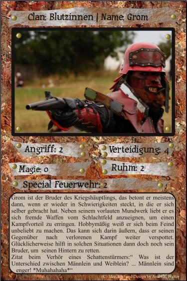 So die Konkurrenz schläft nicht. Das Layout der Karten ist fertig. Hier ein paar Beispiele. Die Werte sind nicht die entgültigen. Da habe ich mit dem Tom schon gesprochen und auch die Texte sind noch nicht fertig.....aber sie sehen sooo toll aus. Ich will unbedingt das Zwergenlayout haben.