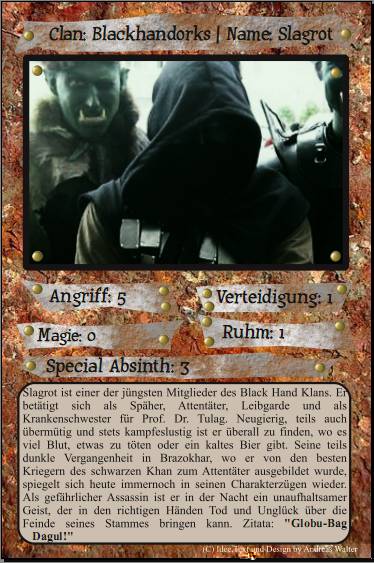 Hab das Kartenlayout etwas geändert, und ne neue Karte erstellt. Vielleicht werde ich noch die Schriftart ändern. Klar siehts immer noch nicht so geil wie die Elfenkarten aus, aber das wird noch. =)