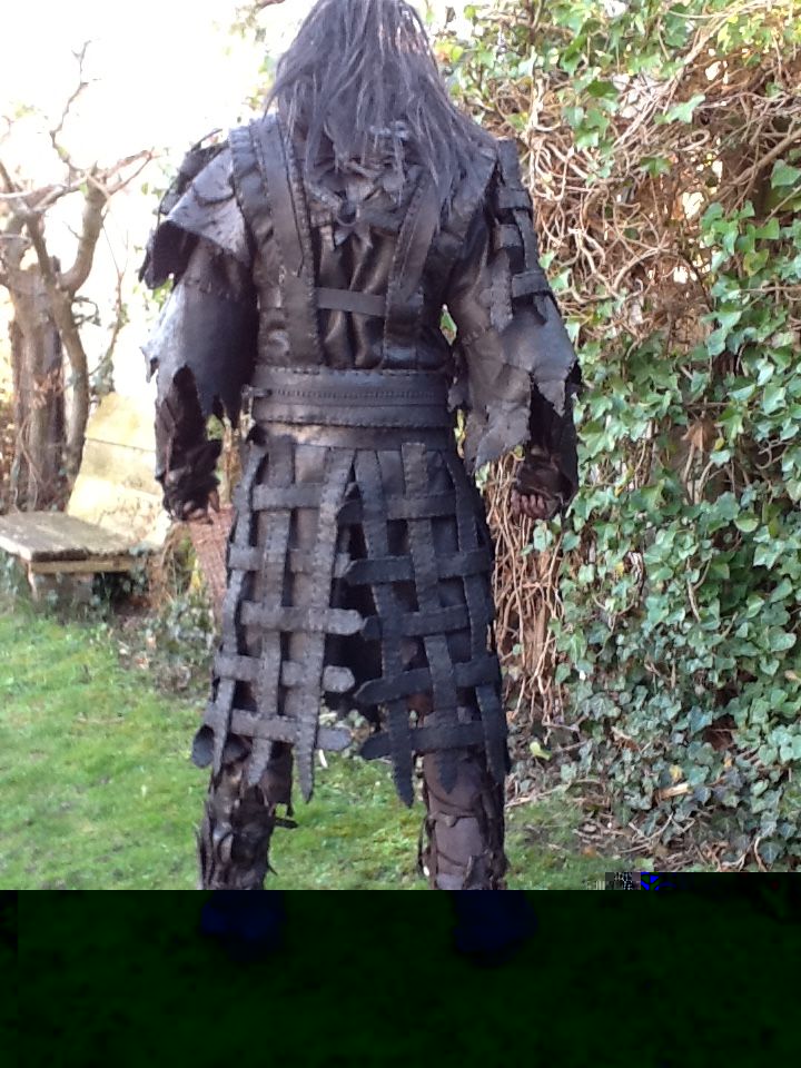 Grundüberlegung war, inspiriert von zahlreichen "Mitgratlern", ein geflochtenes "Netz" an Ledergurten/-Riemen als Erweiterung meiner Koppel für Oberarme und Oberschenkel zu basteln, ohne dafür viel Kohle auszugeben. (Gürtel oder Pferdegeschirr über Ebay, auch wenn's geil aussieht, wollte ich mir einfach sparen, weil ich noch so viel Polsterleder vorrätig hatte.)