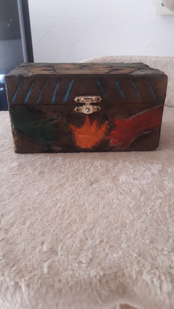 Generell merkte ich das mir Farbe darauf gefäll. Ich musste an irgendeine alte Schatulle denken, die man in irgendeinem alten Ramschladen in Nepal finden könnte
