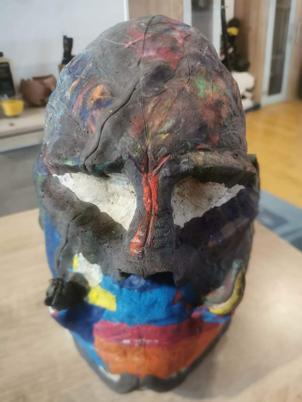 Es sieht streng genommen so aus als würdest du gerade erst anfangen daran zu arbeiten. Als hättest du jetzt die Knete drauf gepackt um nun ein Gesicht daraus zu machen.